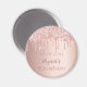 Un imán femenino y trendy para una fiesta de cumpleaños número 50 (o cualquier edad). Un fondo rosa femenino con apariencia metálica rosa dorado falso decorado con gotas de brillo rosa dorado falso. Plantillas para una fecha y nombre/edad 50. Letras de color rosa dorado oscuro. Perfecto como favor o Avisa de la Fecha, recordatorio para tus invitados.