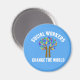 Los trabajadores sociales cambian el imán de cotización inspiradora mundial. Una bonita cita motivacional de trabajo social escrita alrededor de un hermoso árbol de hojas de arco iris.