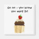 Un imán cuadrado de frigorífico blanco con un delicioso quequito de chocolate con crema y fresa encima, hecho de un diseño de collage de papel pintado a mano por Judy Adamson. ¡Este imán de refrigerador tentará a cualquiera a dieta! Camiseta y tarjeta de felicitación con el mismo diseño de quequitos también disponible.