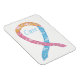 El imán rectangular del refrigerador presenta la pintura de una cinta de conciencia amarilla, azul bebé y rosa suave con nubes. Esta cinta de sensibilización tiene el significado de apoyar la toma de conciencia de la Hernia Diafragmática Congénita (CDH). El arte de la cinta de concientización se puede personalizar con mensajes o nombres personalizados para hacer imanes de gran causa para recaudadores de fondos, regalos de concientización u otros eventos o ocasiones especiales.