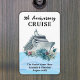 Small custom 5th wedding anniversary magnet with a cruise ship design and a watercolor sea illustration. Ideal to hang on the cabin door and as a keepsake for the fridge back home.
