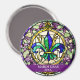 Imán Custom Faux Stained Glass Mardi Gras Flower