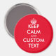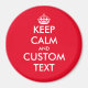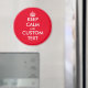 Custom Keep calm and carry on large round fridge magnet. Create your own funny parody. Modern typography template with big crown. All customizable colors. Red and white example. Personalized Birthday gift ideas for friends, family, coworker, employee, guests, clients, customers etc.