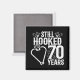 Este divertido diseño de aniversario de 70 bodas es perfecto para las parejas de pescadores que han estado casadas durante 70 años y que aún están enganchadas unas con otras y les encanta ir a pescar. ¡Genial para una fiesta del 70 aniversario del boda celebrar 70 años de matrimonio! Presenta la cita del aniversario boda "Todavía enganchado después de 70 años" con anzuelos de pescado en forma de corazón con un gráfico de pescadores en un diseño de estilo vintage angustiado.