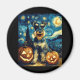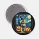 Pequeña Ministra Schnauzer Dog Halloween Jack O Lantern Pumpkin Face Starry Night Van Gogh Style