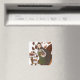 Un ilustracion de otoño muy agradable de un bonito chica de otoño que trabaja en la panadería, pasteles y pasteles con especias de calabaza, uvas, bayas y pasteles decorados en otoño. Dibujo de otoño a mano con hojas de otoño, calabazas, manzanas con colores naranja, burdeos y verdes para tarjetas de bienvenida de temporada, decoración de paredes de vivero, decoración de casa de agradecimiento, cocina, panadería y decoración de cafetería. Es un imán de Acción de Gracias con una mujer horneando pasteles usando fruta de otoño y bayas rodeadas de hojas y calabazas de otoño. Este imán de otoño es una decoración perfecta para casa de Acción de Gracias, cocina, vivero, panadería y decoración de cafetería. ¡Obtén el imán otoñal como regalo de temporada para ella y los niños ahora!