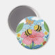 A sweet and cheerful magnet featuring happy bees buzzing around a blooming flower with a colorful butterfly above. Perfect for brightening up your fridge, office, or any magnetic space. A delightful little gift for nature and animal lovers.