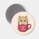 Imán Cute Cat in Coffee Mug Beige Custom Text