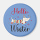 Un lindo ilustracion de patinaje sobre hielo y las palabras: Hola invierno.