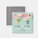 Lovely illustrations of two lovebirds perched on a whimsical branch with various flowers. This save the date magnet is perfect for a summer or spring weddings.