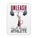 Un divertido levantador de pesas de Merkat en un imán flexible. Utilice "Personalice esta plantilla" para modificar el texto "DESPLIEGUE SU ATLETA INTERIOR" y crear un regalo único y personalizado. Con un lindo personalizado de un meerkat flaco en grandes pantalones cortos, sonriendo mientras levanta sin esfuerzo una enorme barbería con un dedo. Difunde algo de aliento con este tema de levantamiento de pesas y meerkat.