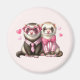Magnet con un lindo ilustracion. Un par de nutrias con ropa rosada. Vestidos de camisetas a rayas, uno con corbata y el otro con un arco. Rodeado de corazones de amor.