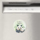 Un imán para la ducha de bebé con un lindo ilustracion acuarela que presenta a una madre blanca y negra y a un bebé panda oso abrazándose. Mamá está sosteniendo su cachorro entre algunos tallos de bambú verde.