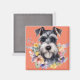 Imán Cute retrato de Schnauzer con flores