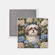 Imán Cute Shih Tzu Puppy Flores de hidrangea azul