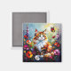 Imán Cute Whimsical Cat, Flowers and Butterflies