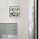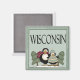 Pequeños amigos de pingüinos se acercan a un imán cuadrado de refrigerador con el lema de Wisconsin.