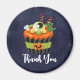 Un imán de agradecimiento con un cupcake de Halloween con un gran ojo y otros elementos espeluznantes variados.