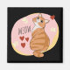 Ilustracion con asientos y sonrientes adorables de gato naranja, con diseño de texto de mimo y decoración de corazones y patas rojas para los amantes del gato