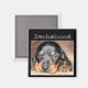 Cachorro doxio negro y marrón en imán cuadrado