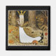 Daga con un largo vestido blanco y una corona dorada caminando por el bosque con su Tomte como trolls aterradores. Hermoso ilustracion de John Bauer del cuento de hadas sueco, "Daga y el paseo volador de la montaña del cielo".