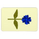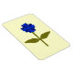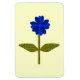 Este imán impresionante presenta una imagen digital de una margarita con un tallo verde con dos hojas verdes sobre ella y pétalos de color azul claro y oscuro con un centro azul claro. El fondo es amarillo sol.