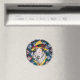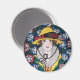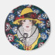 Vibrante, elegante ilustración de alta costura Art Deco francés. Retrato de una hermosa joven que lleva un sombrero negro con flor, colores negro, blanco, rojo, azul, amarillo. Diseño fresco, moderno y artístico.