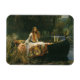 La Dama de Shalott (En barca) (1888) de JW Waterhouse es una pintura de retrato de arte fino de la era victoriana prerrafaelita vintage. Una mujer flota en una barca por un río hacia el Castillo de Camelot. Una balada de tema artúrico basada libremente en fuentes medievales del poeta inglés Alfred, Lord Tennyson.