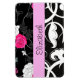 Flores elegantes y sofisticadas, con un diseño adamascado de color negro, blanco y rosa. Regalo moderno y de moda, perfecto para el amante del patrón en tu vida. Personalice agregando su nombre, apodo, monograma o iniciales.