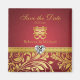 Damasco rojo y oro, doble felicidad china "Salven la fecha" imanes de refrigerador boda.