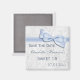 Elegante muchacha Salven los dulces imanes de 16/16 dulces. Hermoso fondo blanco de damasco con un bonito, elegante arco azul e imagen de cinta. Estos glamorosos, modas, elegantes Save the Dates son bellamente sofisticados. Tengo invitaciones coincidentes para dulces 16/16 y otros productos a juego en mi tienda. NOTA: Todos los productos de Zazzle tienen imágenes impresas planas. Imágenes de arcos y cintas compradas de diseños digitales por elena. Si necesitas ayuda para personalizar tu producto, ponte en contacto conmigo a través de mi tienda y estaré encantado de ayudarte.
