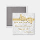 Elegante muchacha Salven los dulces imanes de 16/16 dulces. Hermoso fondo blanco de damasco con un bonito, elegante arco dorado e imagen de cinta. Estos glamorosos, modas, elegantes Save the Dates son bellamente sofisticados. Tengo invitaciones coincidentes para dulces 16/16 y otros productos a juego en mi tienda. NOTA: Todos los productos de Zazzle tienen imágenes impresas planas. Imágenes de arcos y cintas compradas de diseños digitales por elena. Si necesitas ayuda para personalizar tu producto, ponte en contacto conmigo a través de mi tienda y estaré encantado de ayudarte.