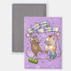 Ratones de baile lindo en un imán de nevera. Utilice "Personalice esta plantilla" para modificar el texto de "Feliz 12 cumpleaños Rachel x" y crear un regalo de cumpleaños único y personalizado. Con dos ratones felices en gorras fiestas, bailando como confeti y una cinta caen alrededor de ellos, con globos esparcidos en el suelo, con un fondo floral.