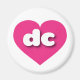 Este imán cuenta con un vibrante corazón rosado caliente que contiene las letras negrita, blanca, redondeada de funda inferior dc, una abreviatura juguetona para el Distrito de Columbia.