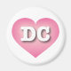 Este imán presenta un corazón tranquilo y fresco de color rosa con un centro blanco lavado que contiene las letras negrita y blanca del funda superior DC, la abreviatura oficial del Distrito de Columbia.