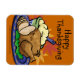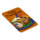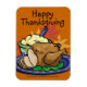 Happy Thanksgiving Turkey Fridge Magnet presenta nuestras divertidas obras de arte creadas digitalmente por Traci Van Wagoner de un jugoso y delicioso pavo en una bandeja con un tazón de puré de patatas y hojas de otoño en un festivo fondo naranja de otoño. Arriba dice, "Feliz Día de Acción de Gracias". Comparte las gracias y la diversión de las vacaciones con tus amigos y familia y decora tu casa o oficina esta temporada con nuestro imán original del Día de Acción de Gracias.