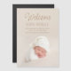 Guión moderno y elegante "Bienvenidos" imán fotográfico con anuncio de nacimiento con tipografía marrón. Esta tarjeta presenta una foto del recién nacido personalizado y detalles de su nacimiento en un moderno y limpio sans serif. Añade tu foto, fecha de nacimiento y detalles para anunciar el nacimiento de tu bebé con una tarjeta de imán de keepsake única. © y.BEE PAPERIE #ZazzleMade #cumpleaños anuncio #anuncio de nacimiento imán #anuncio de bebé #babyahotomagnet