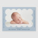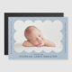 Imán simple y moderno de anuncio de nacimiento con la foto de su bebé enclavada dentro de un marco de vieiras azul claro. Personalice el imán de anuncio de nacimiento agregando el nombre de su bebé e información adicional en letras de la marina.