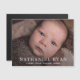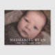 Imán moderno de anuncio de nacimiento de niños con un diseño limpio y minimalista con el nombre del bebé en una gran fuente de serif junto con sus estadísticas de nacimiento sobre su foto favorita de sangre completa. Este imán simple y elegante es una gran manera de anunciar la llegada de su bebé.