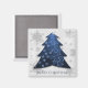Añada un toque festivo a su cocina esta temporada de vacaciones con un imán de árbol de Navidad azul festivo. El diseño del imán incluye un vibrante y festivo árbol de Navidad adornado con caídas de copos de nieve grises y blancos con un saludo de vacaciones. También hay artículos de regalo y de vacaciones disponibles con este diseño.