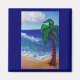 Detalle de palmeras en la playa con el océano y el cielo detrás. Imagen de la pintura "Surfing Angel Raphael".
