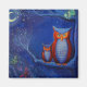Una lechuza adulta y una lechona vigilan el bosque por la noche. De mi acrílico original sobre pintura de lona.