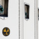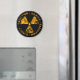 Imán negro con un símbolo de radiación amarillo muy afligido.