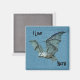 Esta es una imagen vintage de un murciélago volador de tono azul. Tiene un aspecto 3D y está colocado sobre un fondo de varios tonos azules. ¡El texto dice que me encantan los murciélagos! Vea mi tienda Arte de MAR para encontrar productos que coincidan con este diseño.