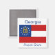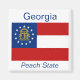 Una auténtica imagen de calidad superior de la bandera de Georgia puesta entre el nombre del estado y el apodo sobre un fondo de color de la bandera.