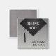 Este es el imán de agradecimiento que coincide con la elegante invitación de sombrero negro con estilo de borla. Todo lo que necesita hacer es cambiar el texto y escribir sus propias palabras e información. Para cambiar la fuente, el color y el tamaño del texto, o para agregar más texto, puede hacerlo haciendo clic en “Personalizar”
