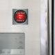 Divertido, gran botón rojo 3d con un borde de aspecto plateado para estar siempre contigo~~presione aquí en caso de emergencia! Añade cualquier texto personalizado o simplemente elimina si no es necesario.