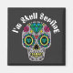 Hermoso imán de letras de "I'm Skull Surfing" con el cráneo colorido y decorado de forma abstracta para la temporada de Halloween.