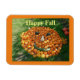 En este imán se muestra una pequeña foto de calabazas haciendo una cara sonriente de calabaza, con el mensaje "Happy Fall". Una gran decoración para Caer o regalar.