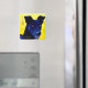Un imán genial con una cara de perro linda y las palabras 'Amor Lealtad Compañerismo'.